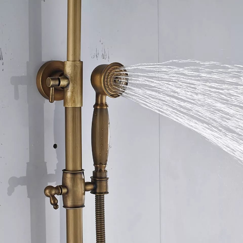 - Alamă sanitară: Coloana de duș este fabricată din alamă sanitară, un material cunoscut pentru rezistența și durabilitatea sa. Acest material asigură o utilizare pe termen lung și menține finisajul bronz antichizat impecabil, contribuind la aspectul său clasic și elegant.