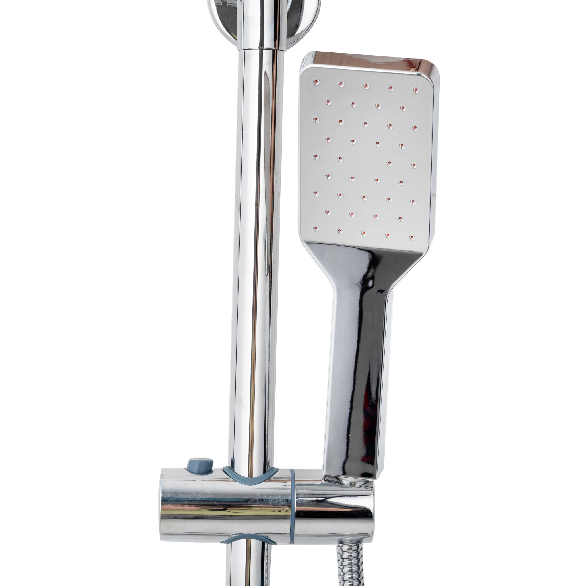 - Duș fix superior: Coloana de duș principală include o pară de duș superioară, ideală pentru un duș relaxant și uniform. Aceasta oferă o acoperire largă a apei, fiind perfectă pentru utilizatorii care doresc un duș revitalizant.