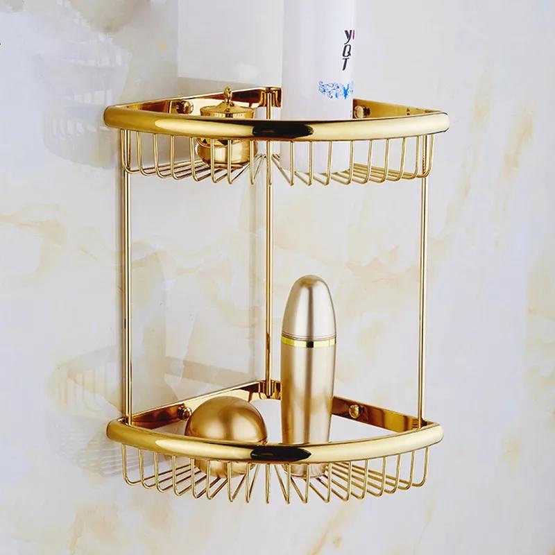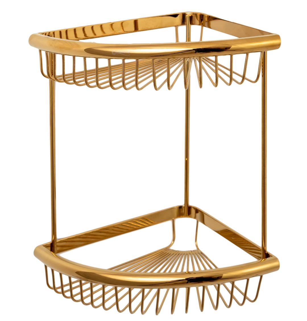 Etajera de baie dublă TRENDY’S, cu montare pe colț și finisaj auriu, este un accesoriu sofisticat și funcțional, perfect pentru organizarea eficientă a spațiului din baie. Fabricată din inox AISI 304 de cea mai înaltă calitate și conectată prin brațe verticale din inox, această etajeră adaugă un plus de stil și practicitate băii tale.