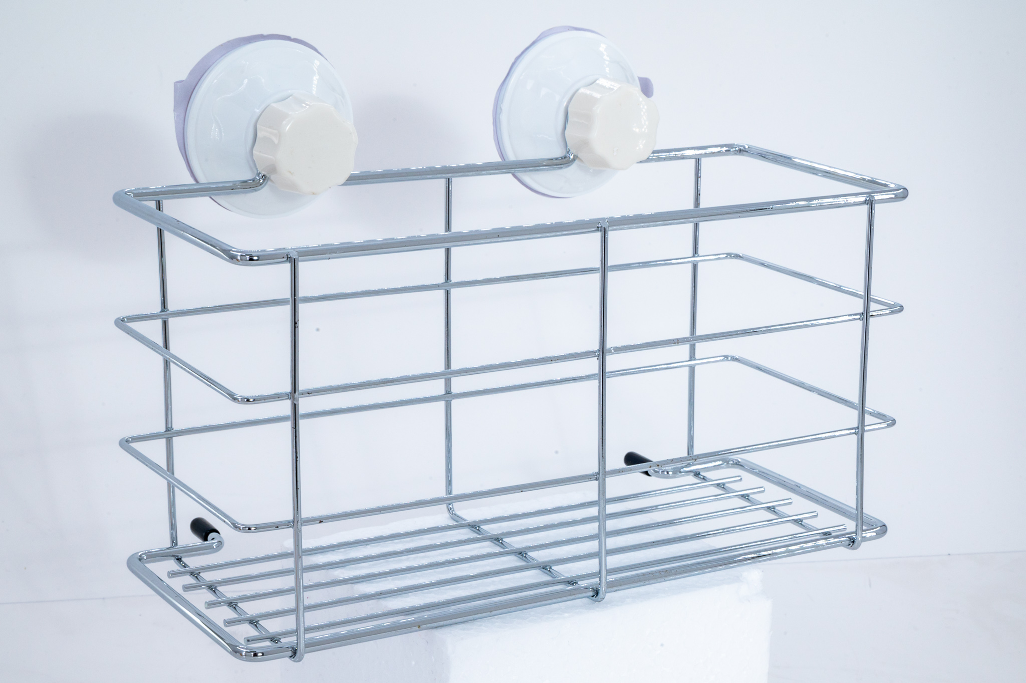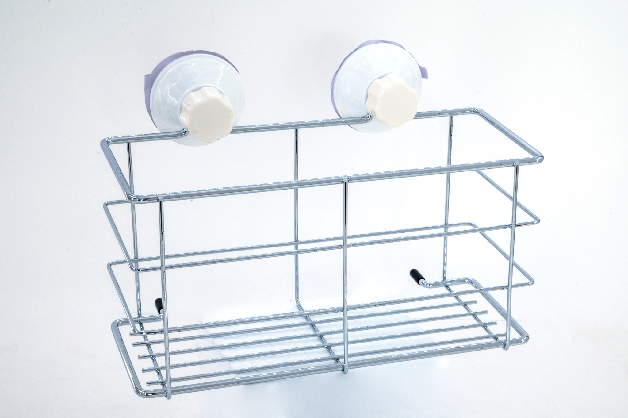 - Montarea Suportului: Aplicați ventuzele pe perete și fixați etajera, asigurându-vă că este bine prinsă și stabilă.