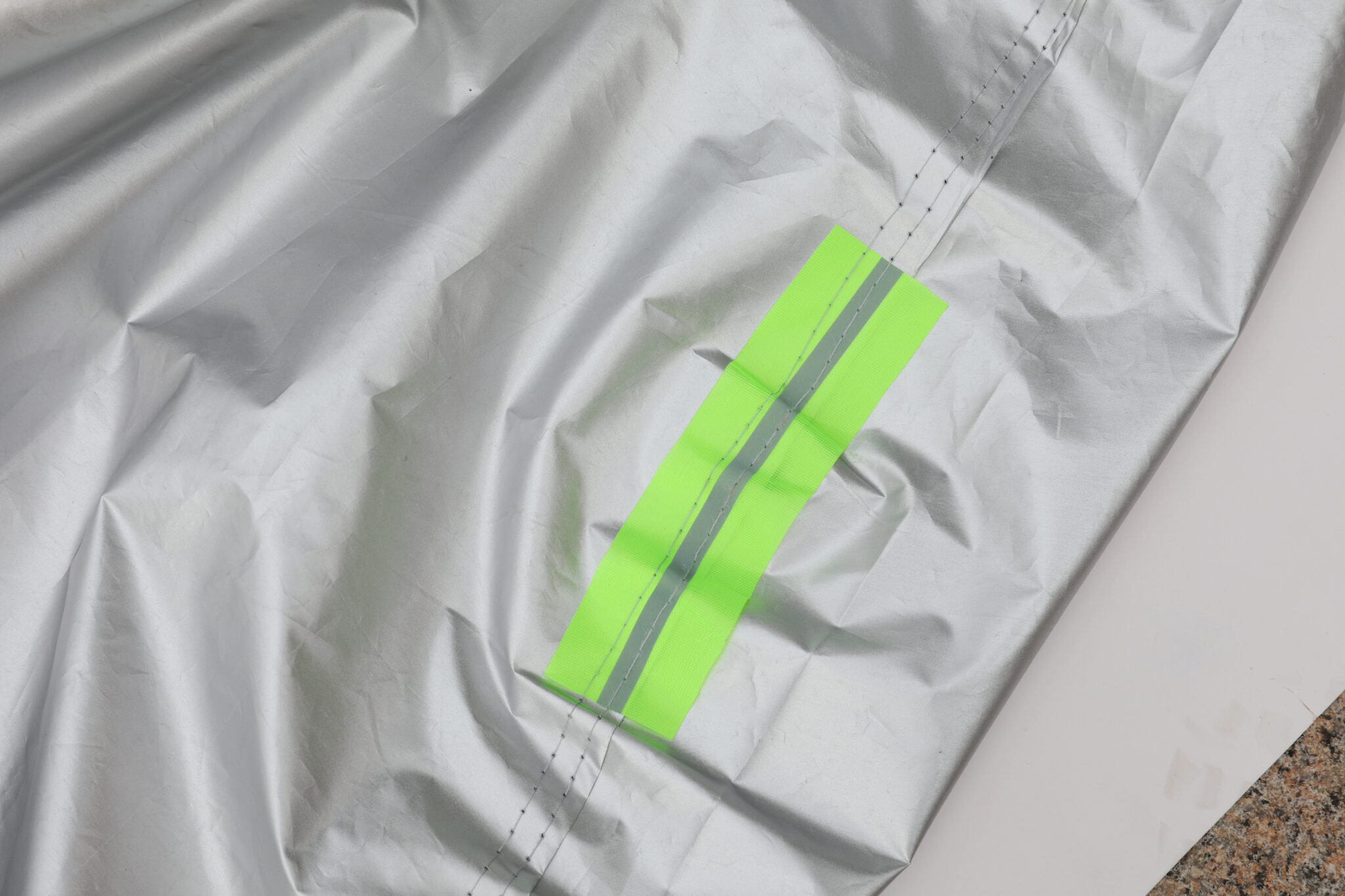Modelul dispune de benzi reflectorizante verzi pentru o vizibilitate crescută pe timp de noapte, elastic de fixare în partea inferioară, orificiu antifurt compatibil cu lacăt, precum și curea centrală cu cataramă reglabilă care previne ridicarea de vânt.