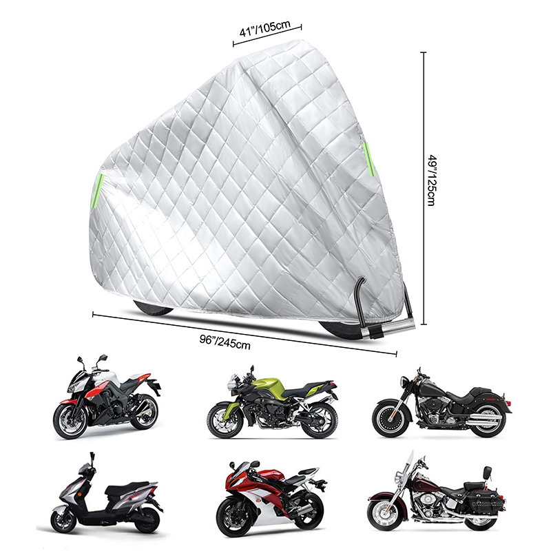 Husă termoizolantă pentru motocicletă – argintie, matlasată, impermeabilă, 245×125×105 cm