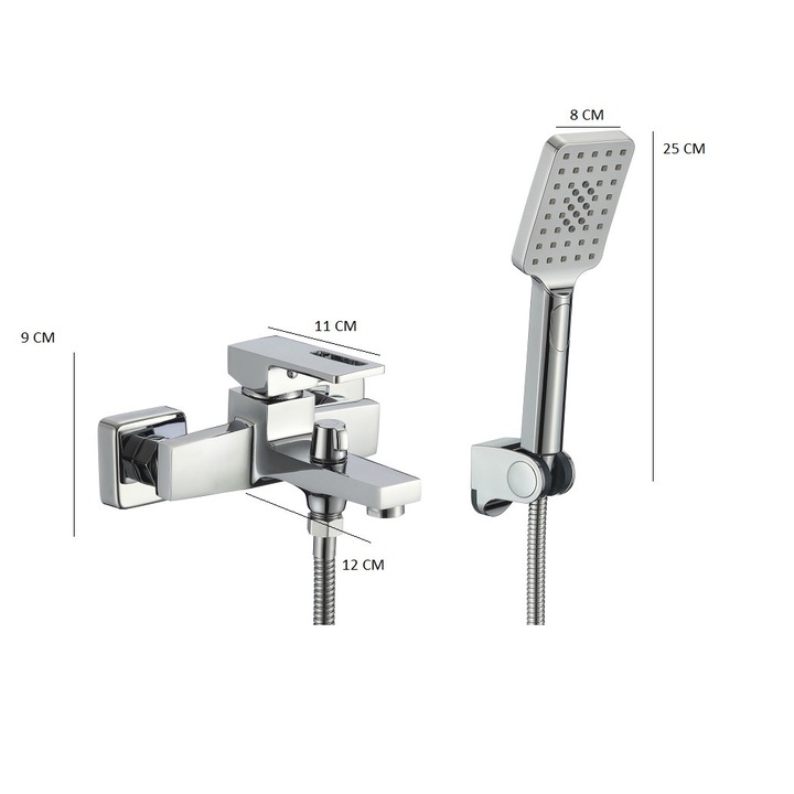 • Baterie pentru cadă cu montare pe perete – design robust și eficient, cu control precis al temperaturii și debitului.
